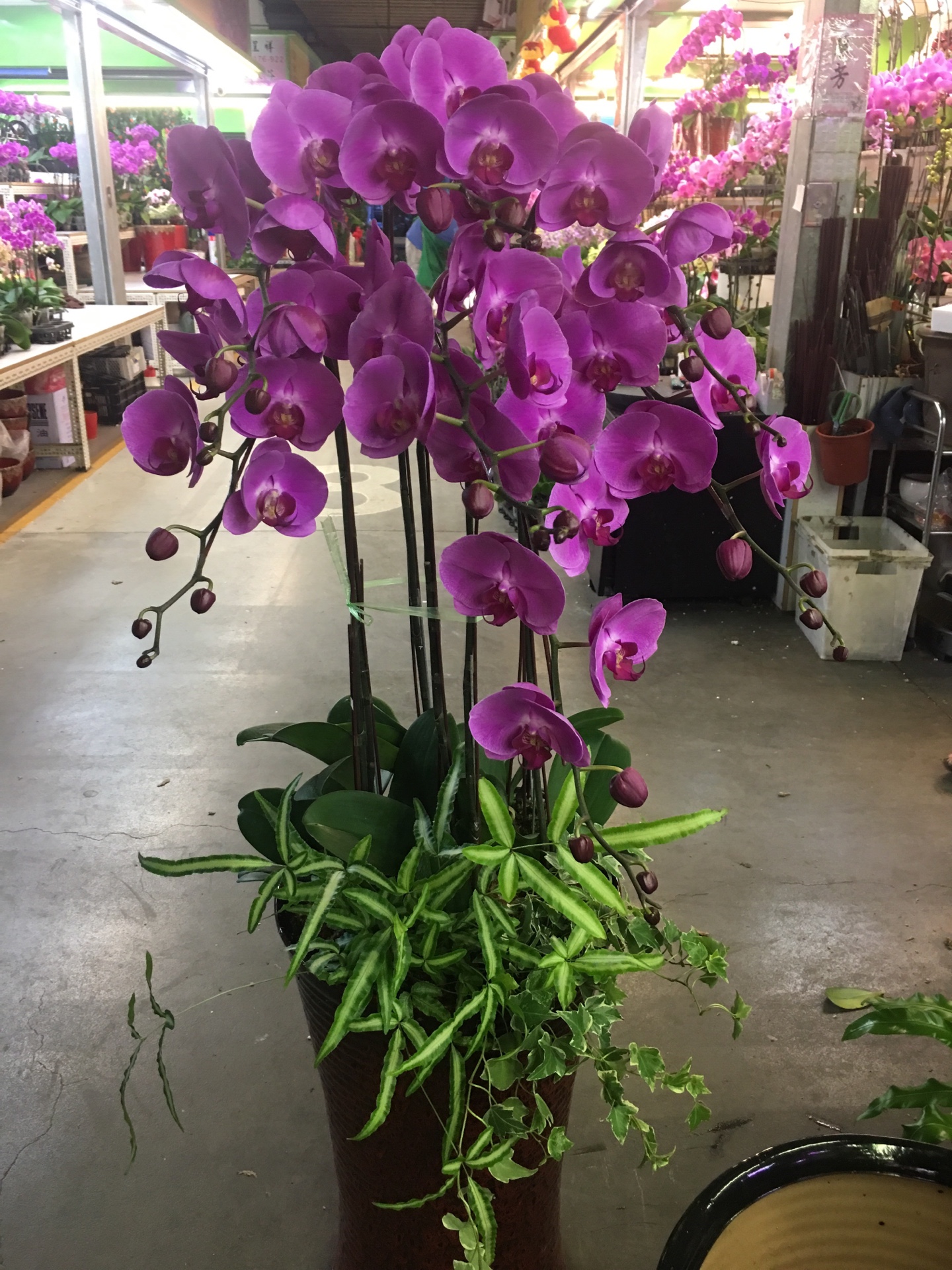編號:D0016—-紫紅蘭花黑高盆