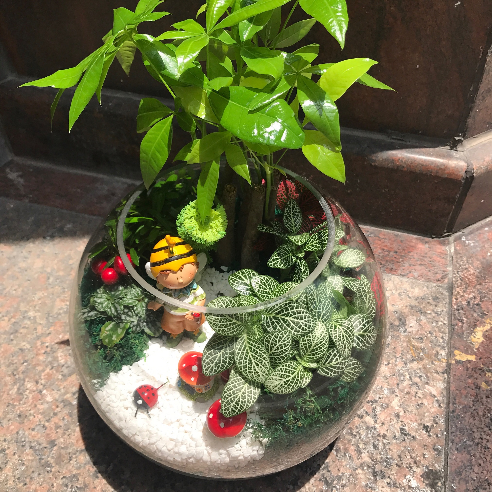 編號:E0001—- 10吋小蜜蜂玻璃屋盆景