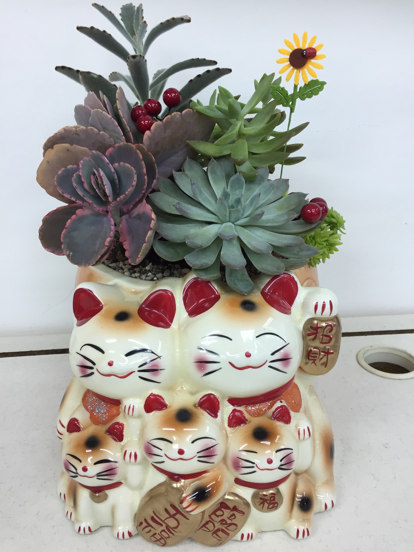 編號:E0004—-五福臨門祝賀盆景 20*28*38