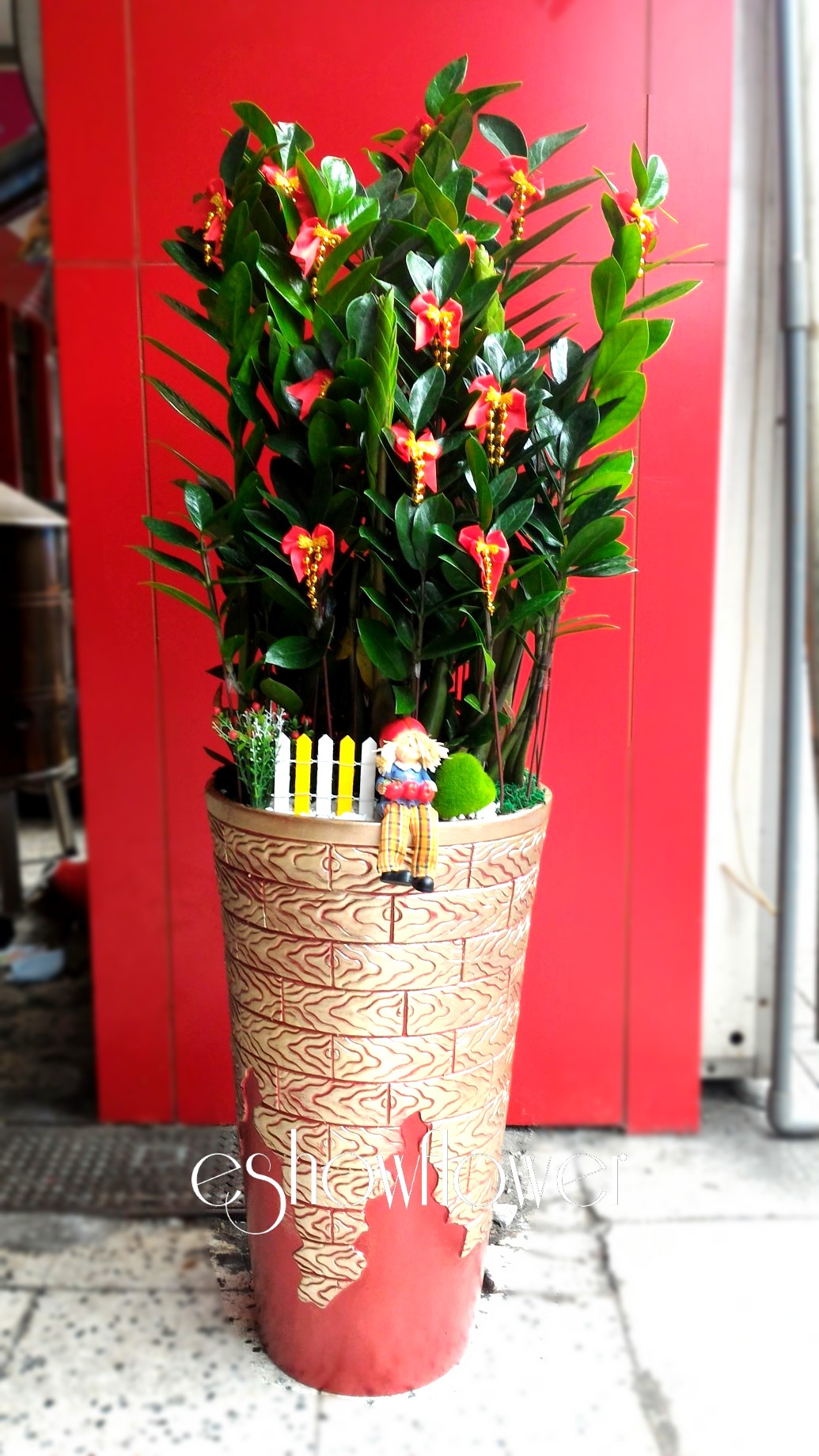 編號:EH0020—-金錢旺財紅高盆