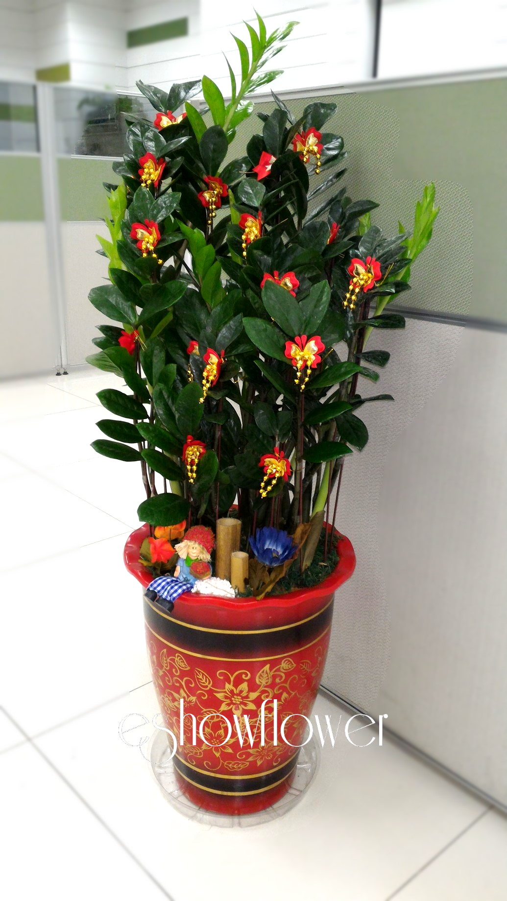 編號:EH0059—-金錢紅盆祝賀盆景